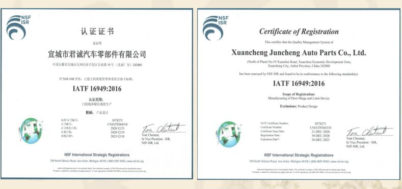 宣城市君誠(chéng)汽車零部件有限公司是專業(yè)生產(chǎn)各類汽車鉸鏈及限位器的民營(yíng)企業(yè),總投資3000余萬(wàn)元,位于宣城高新技術(shù)產(chǎn)業(yè)開發(fā)區(qū),緊鄰宣廣、宣蕪高速公路,地理位置優(yōu)越,交通便捷。是“國(guó)家高新技術(shù)企業(yè)、知識(shí)產(chǎn)權(quán)貫標(biāo)企業(yè)、安徽省商標(biāo)示范企業(yè)、安徽省科技型企業(yè)”,已獲得國(guó)家發(fā)明專利18項(xiàng),實(shí)用新型發(fā)明專利4項(xiàng)。主要從事各類汽車門鉸鏈及限位器的設(shè)計(jì)、研發(fā)、生產(chǎn)、和銷售,具有專業(yè)的合作團(tuán)隊(duì)。自2015年正式生產(chǎn)至今,已形成一整套完整的生產(chǎn)、質(zhì)量管理體系。并已通過國(guó)家強(qiáng)制性產(chǎn)品認(rèn)證“3C”體系認(rèn)證及IATF16949國(guó)際質(zhì)量體系認(rèn)證。在生產(chǎn)設(shè)備上,公司擁... 【查看詳細(xì)】